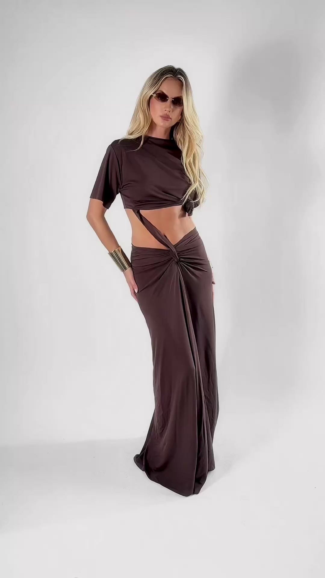 Long dress with a built-in T-shirt. Khaki or chocolate.