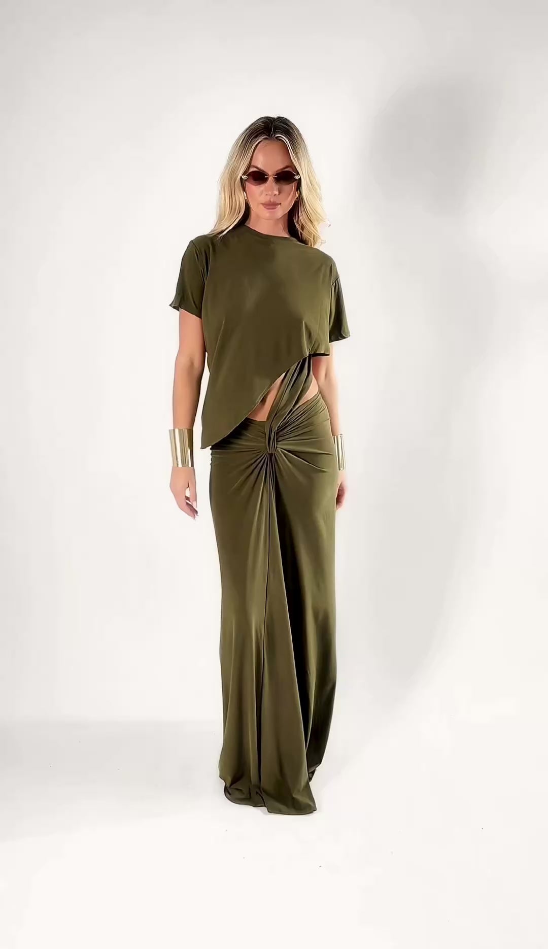 Długa sukienka z wbudowanym t-shirtem. Khaki i brąz