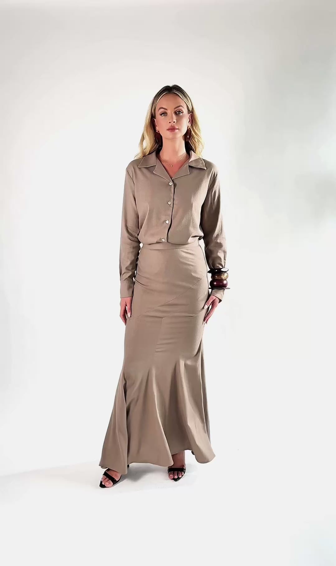 Lniany komplet : koszula i maxi spódnica . 2 kolory: capplicable i biały.